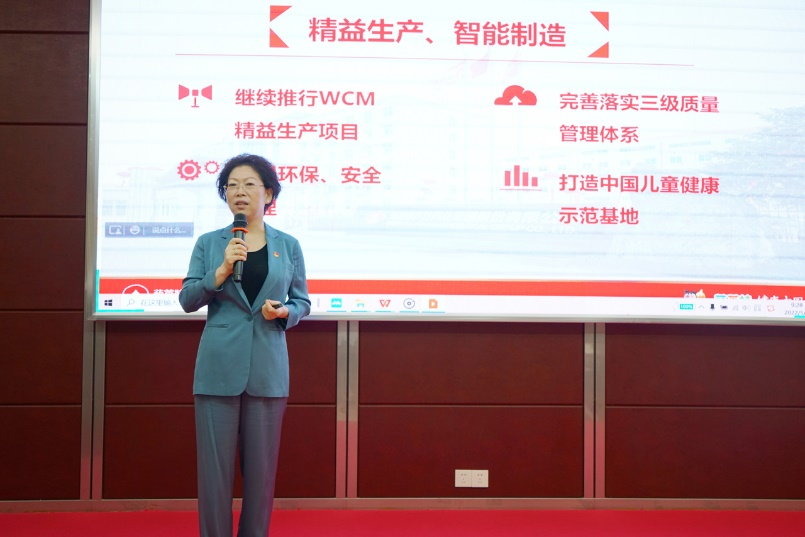刘景萍董事长引用席大大总书记在2022年博鳌亚洲论坛上的重要讲话勉励全体与会人员,在海南自贸港建设的机遇期,认真学习贯彻落实省第八次党代会精神,坚持党建引领企业发展,将德扑之星药业集团打造成中国儿童健康领军企业。